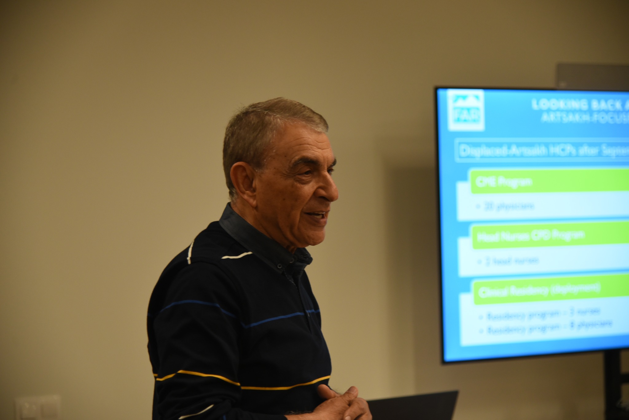 Մեզ համար պատիվ է տարիներ շարունակ լինել Հայ օգնության ֆոնդի և, հատկապես, կազմակերպության բժշկական ծրագրերի գործընկերը: «Արաբկիր» բժշկական համալիրի փորձառու մասնագետների մի ամբողջ թիմ մասնակցում է ծրագրերին` որպես շարունակական մասնագիտական զարգացման դասընթացների վերապատրաստող: Մեր բժիշկներն ու բուժքույրերը ՀՕՖ-ի ծրագրերով իրենց մասնագիտական գիտելիքներն ու հմտություններն են փոխանցել և փոխանցում ինչպես Երևանում և մարզերում, այնպես և, մինչև վերջին ցավալի իրադարձությունները, Արցախում:
