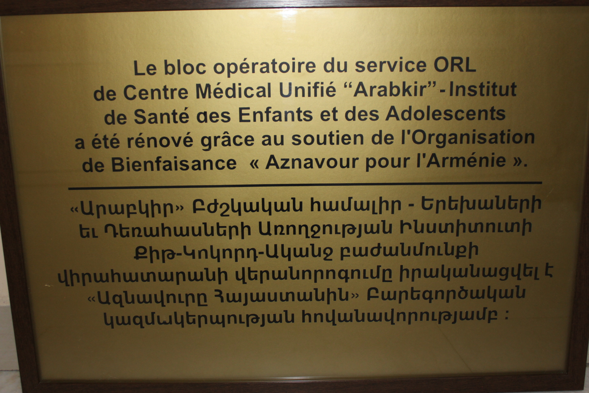 2006թ-ին Շառլ Ազնավուրին հյուրընկալելու պատիվ է ունեցել նաև «Արաբկիր» բժշկական համալիրի թիմը: Պրոֆեսոր Արա Բաբլոյանի հրավերով աշխարհահռչակ շանսոնիեն «Արաբկիրում» էր` այնտեղ, որտեղ հազարավոր երեխաների կյանքեր են փրկվում` ամենօրյա խոնարհ նվիրումով: Բժշկական համալիրի քիթ-կոկորդ-ականջաբանական բաժանմունքի վիրահատարանն այդ տարիներին նորոգվել էր «Ազնավուրը Հայաստանին» բարեգործական կազմակերպության հովանավորությամբ: