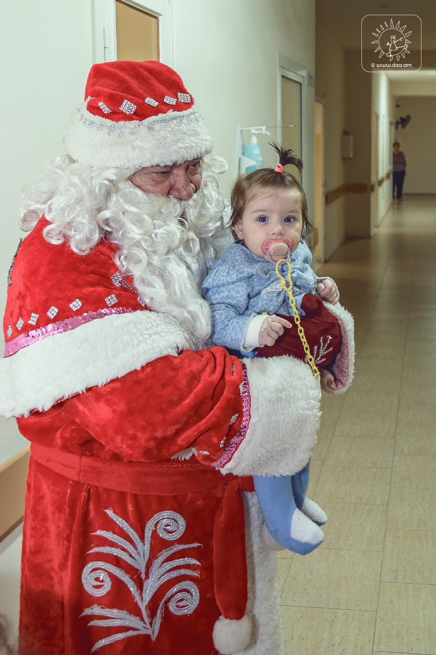 Один из них, так похожий на настоящего Дедушку, вместе со своими помощниками из внутрибольничной школы DAA ходил по отделениям, раздавал подарки, задавал вопросы и подбадривал лечащихся детей.