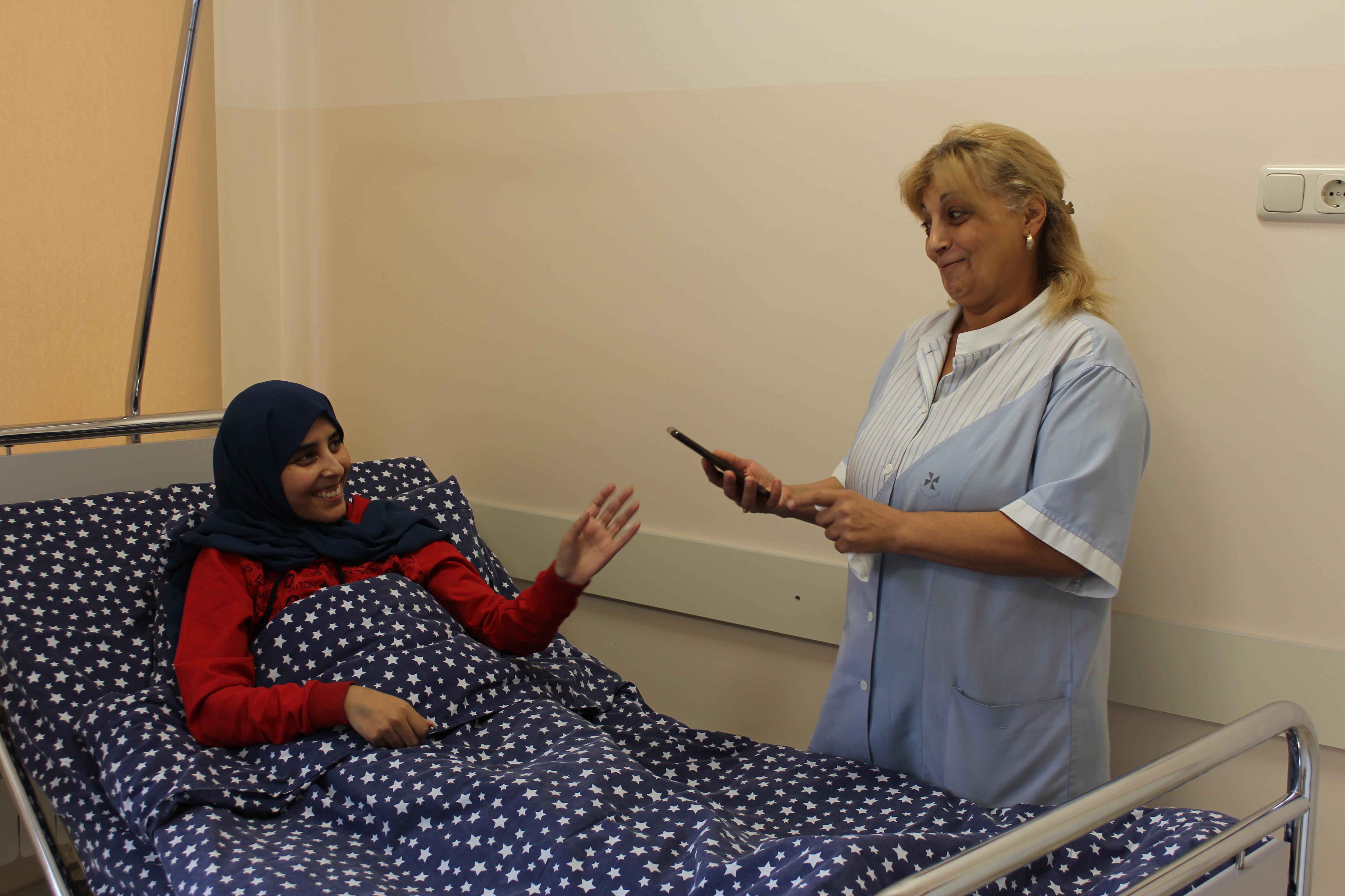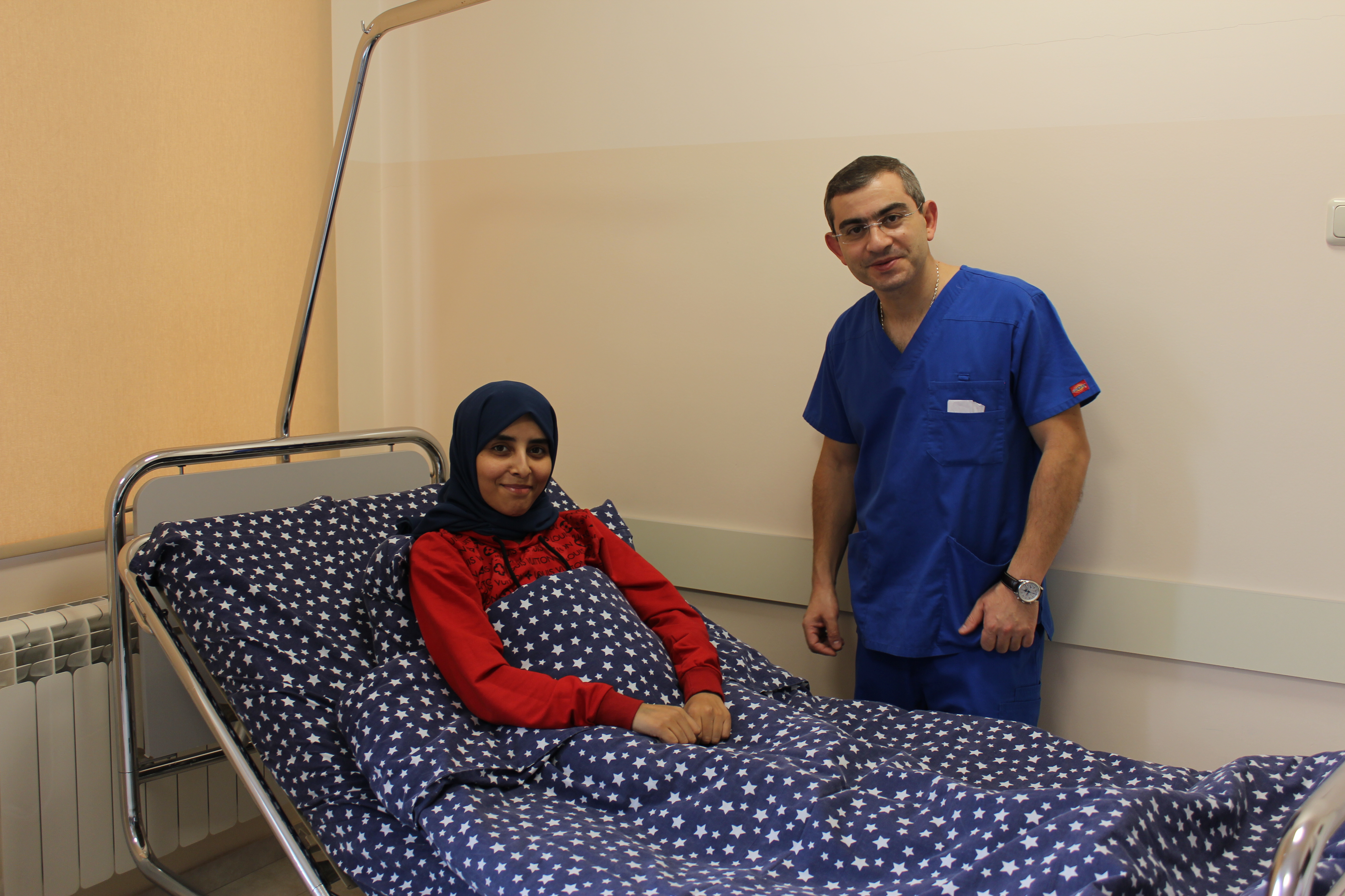 Գեղեցկադեմ Խադիջան Ալժիրից է: «Արաբկիր» բժշկական համալիր է եկել «Միզապարկի էքստրոֆիա ունեցող պացիենտների ասոցիացիայի» /ABEC/ և մեր վիրաբուժական թիմի վաղեմի բարեկամ, Սիեթլի Մանկաբուժական հիվանդանոցի պրոֆեսոր Փոլ Մերգերյանի միջնորդությամբ: