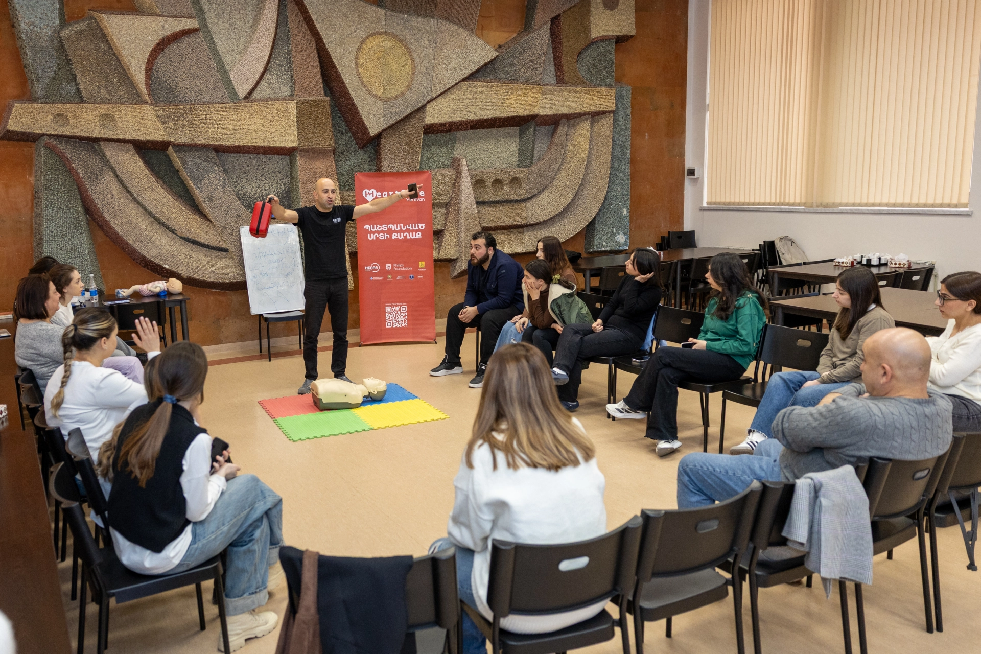 «Safe Heart Yerevan» ծրագրի շրջանակում «Արաբկիր» բժշկական համալիրում անցկացվել է առաջին օգնության դասընթաց: Ծրագրի նպատակն է նախքան շտապօգնության ժամանումը Երևանում սրտի կանգ ունեցող տուժածին ցուցաբերել առաջին օգնություն։