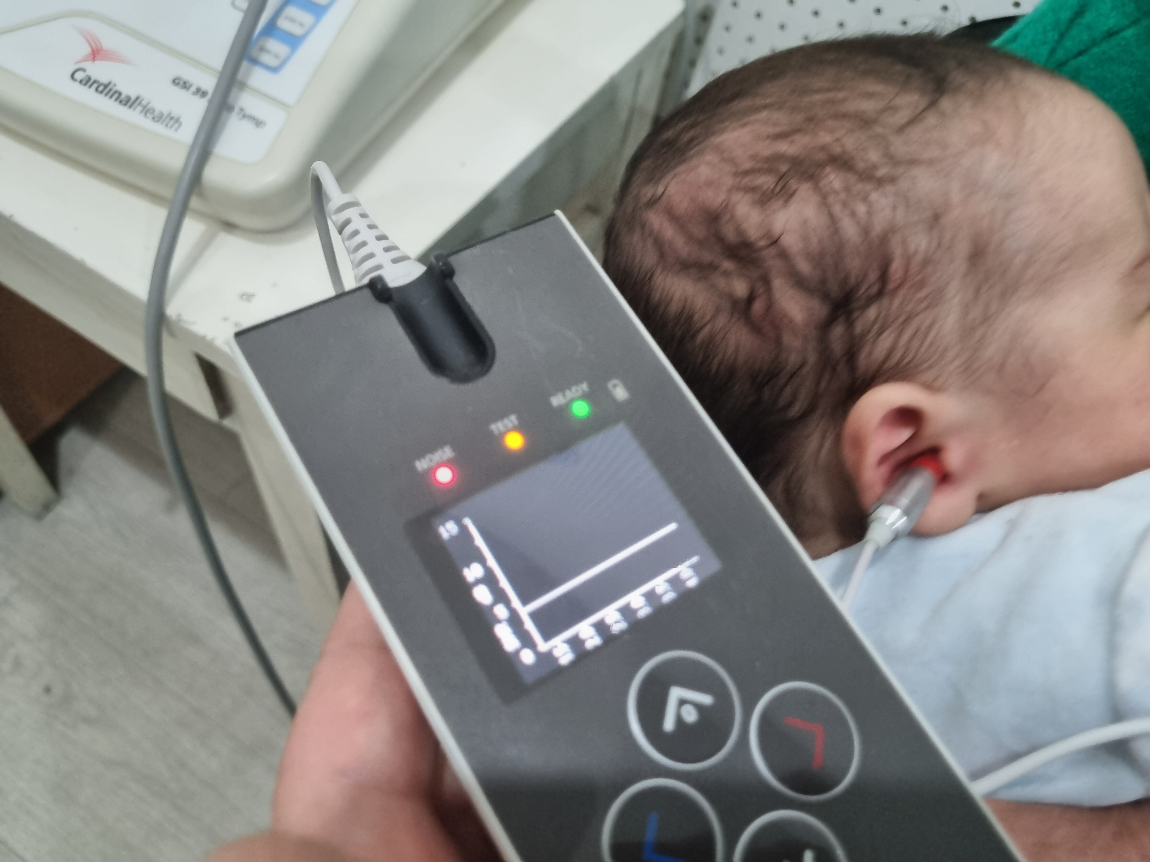 The procedure itself lasts no more than 5 minutes. At the end of the examination, the device will display either "PASSED" or "NOT PASSED." "PASSED" means that the baby's hearing is normal, while "NOT PASSED" indicates that there may be an issue, and a repeat examination is necessary.