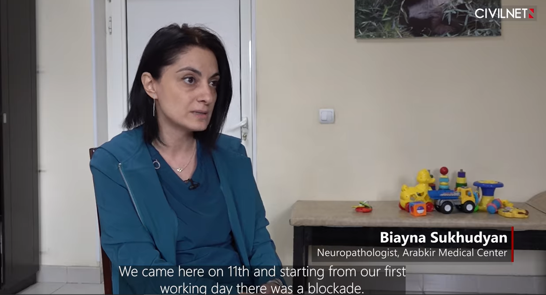 [Biayna Sukhudyan, pediatric neurologist, Arabkir MC] We came here on the 11th and starting from our first working day there was a blockade.