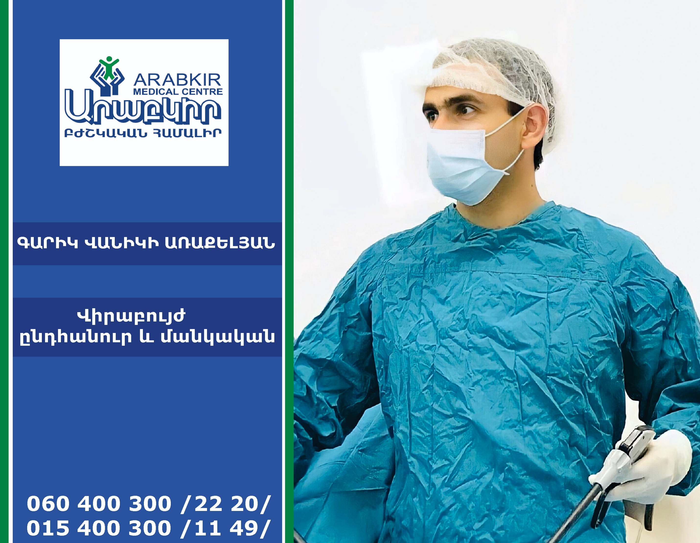 Dear visitors, we gladly inform you that Adult Surgery Services fully equipped with modern technologies are available at “Arabkir +”. Both open and laparoscopic surgeries are performed here: Cholecystectomy (in case of calculous and acalculous cholecystitis) Herniotomy (inguinal, ventral, umbilical, epigastric) Appendectomy (removal of the appendix) Abdominal cystic masses (simple and complex cysts of liver, parasitic cysts, e.g. echinococcus) Colorectal surgeries (hemorrhoids, anal fissure, pilonidal cyst) Ambulatory interventions (with local anesthesia) For more information call 060 400 300 /22 20/ and 015 400 300 /11 49/.