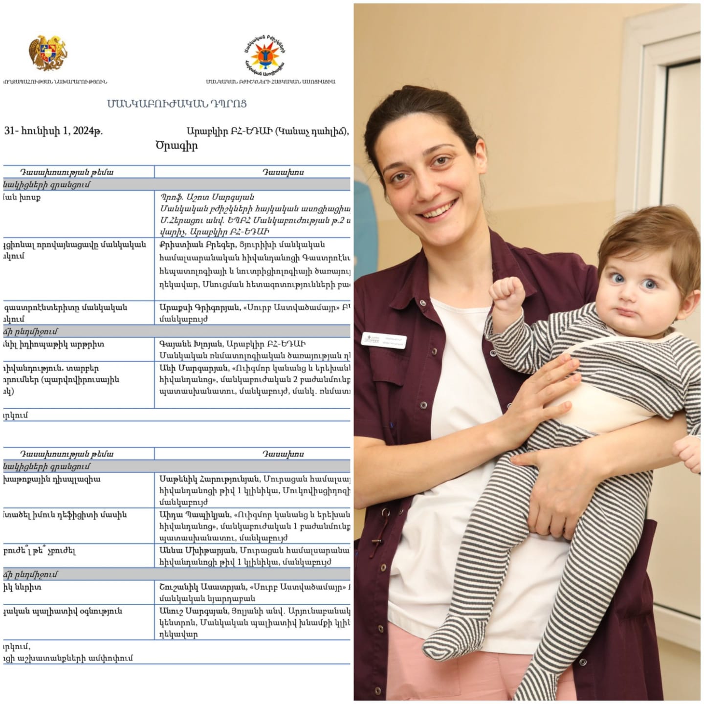 Ավանդույթ դարձած գիտաժողովը նվիրված է մանկաբուժության արդիական հարցերին, մանկական հիվանդությունների կանխարգելման, բուժման և վարման նորագույն մոտեցումներին: Կոնֆերանսին դասախոսություններով և զեկուցումներով հանդես կգան Լոս Անջելեսի մանկական հիվանդանոցի և ՀՀ ճանաչված մանկական բժիշկ-մասնագետները, նախատեսվում է հետաքրքիր կլինիկական դեպքերի ներկայացում, ինչպես նաև երեխայի զարգացման խնդիրների վերաբերյալ քննարկումներ: