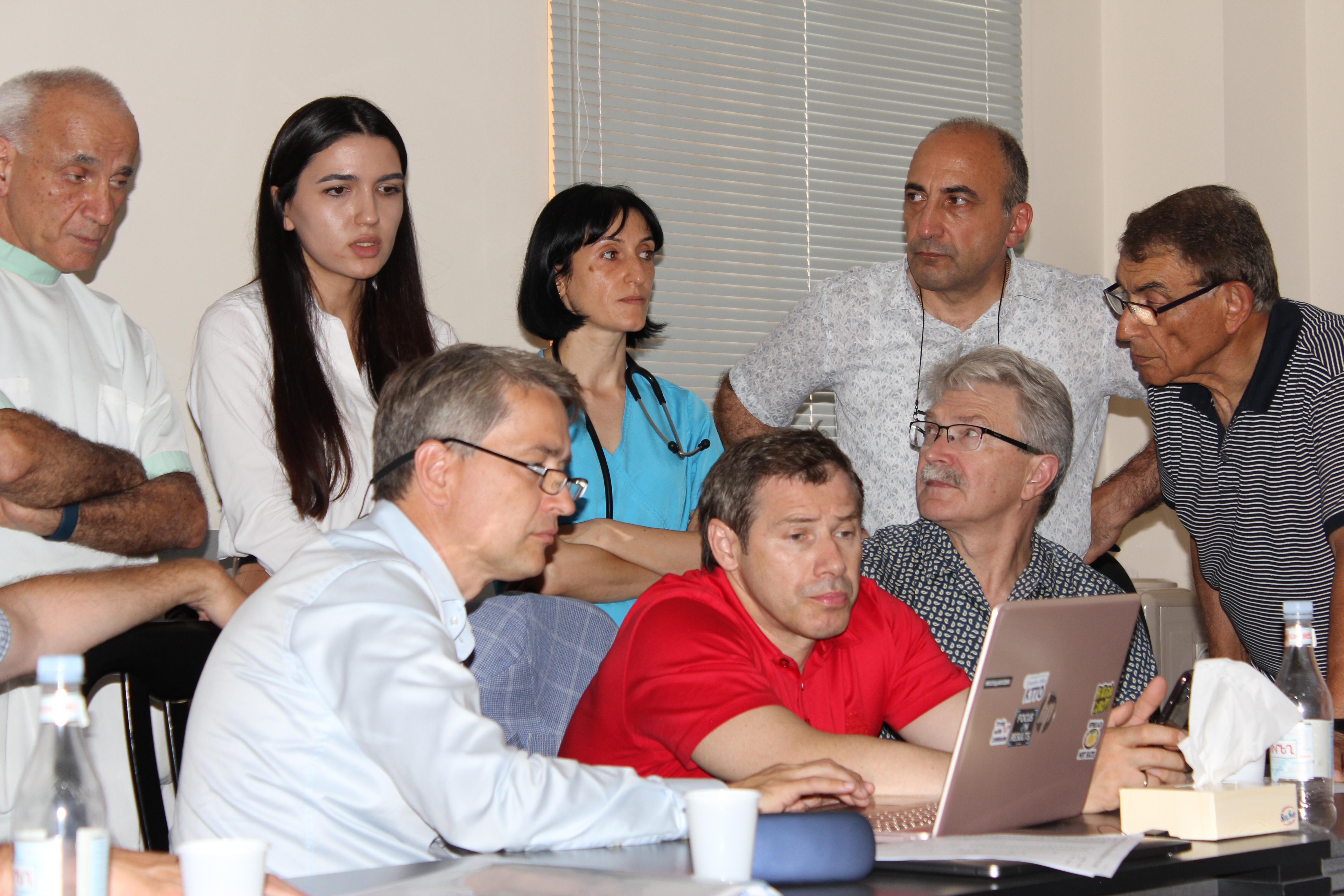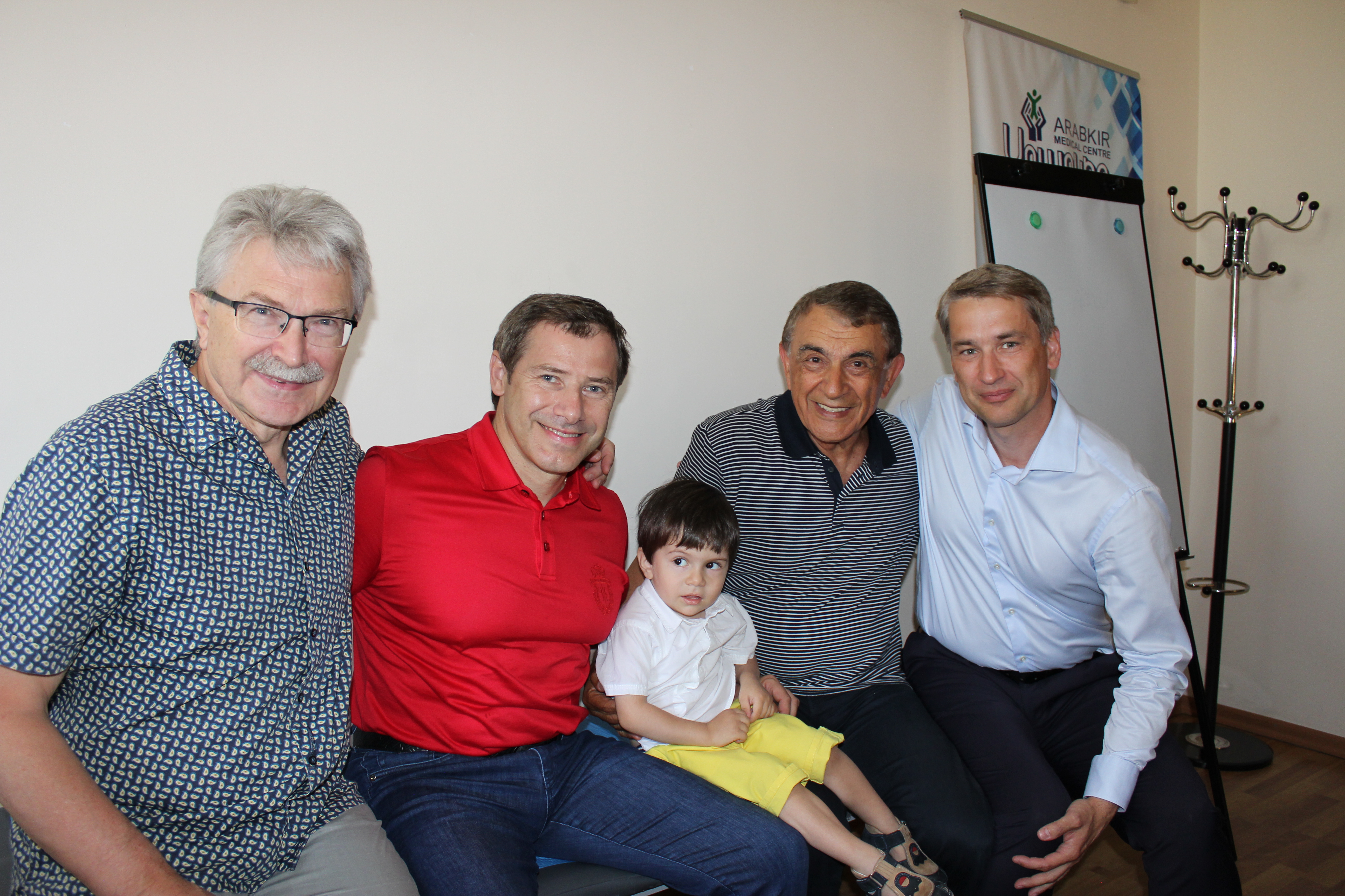 Կրկին «Արաբկիր» բժշկական համալիրում են լյարդի փոխպատվաստման գծով մեր գործընկերները Բելառուսից` պրոֆեսոր Օլեգ Ռումմոյի գլխավորությամբ: Այսօր նրանք հանդիպել են արդեն վիրահատված պացիենտներին և նրանց ծնողներին, գնահատել երեխաների վիճակն ու խորհրդատվություն իրականացրել այն պացիենտների համար, որոնք հայ գործընկերների կարծիքով լյարդի փոխպատվաստման կարիք ունեն: