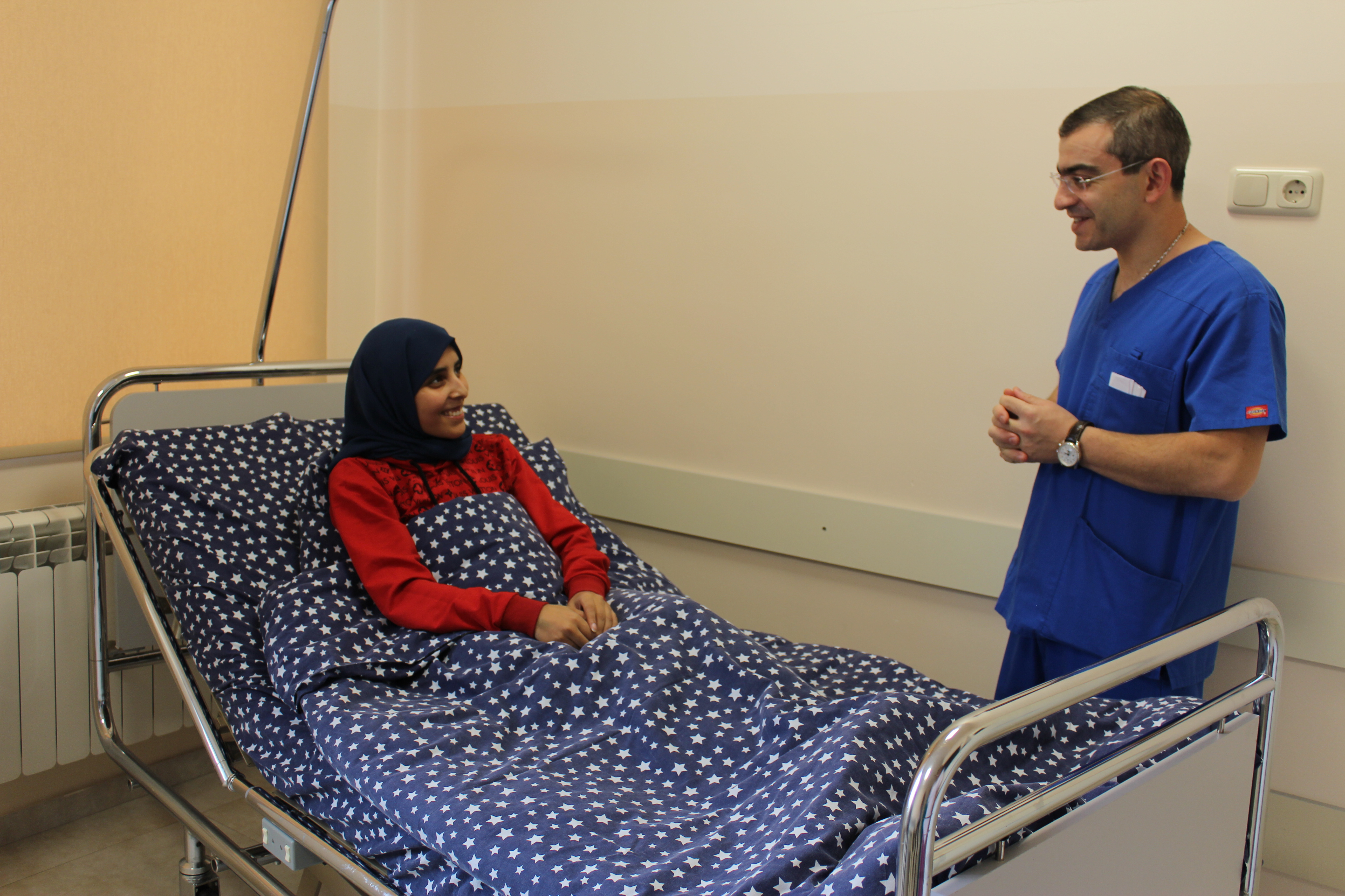 Գեղեցկադեմ Խադիջան Ալժիրից է: «Արաբկիր» բժշկական համալիր է եկել «Միզապարկի էքստրոֆիա ունեցող պացիենտների ասոցիացիայի» /ABEC/ և մեր վիրաբուժական թիմի վաղեմի բարեկամ, Սիեթլի Մանկաբուժական հիվանդանոցի պրոֆեսոր Փոլ Մերգերյանի միջնորդությամբ: