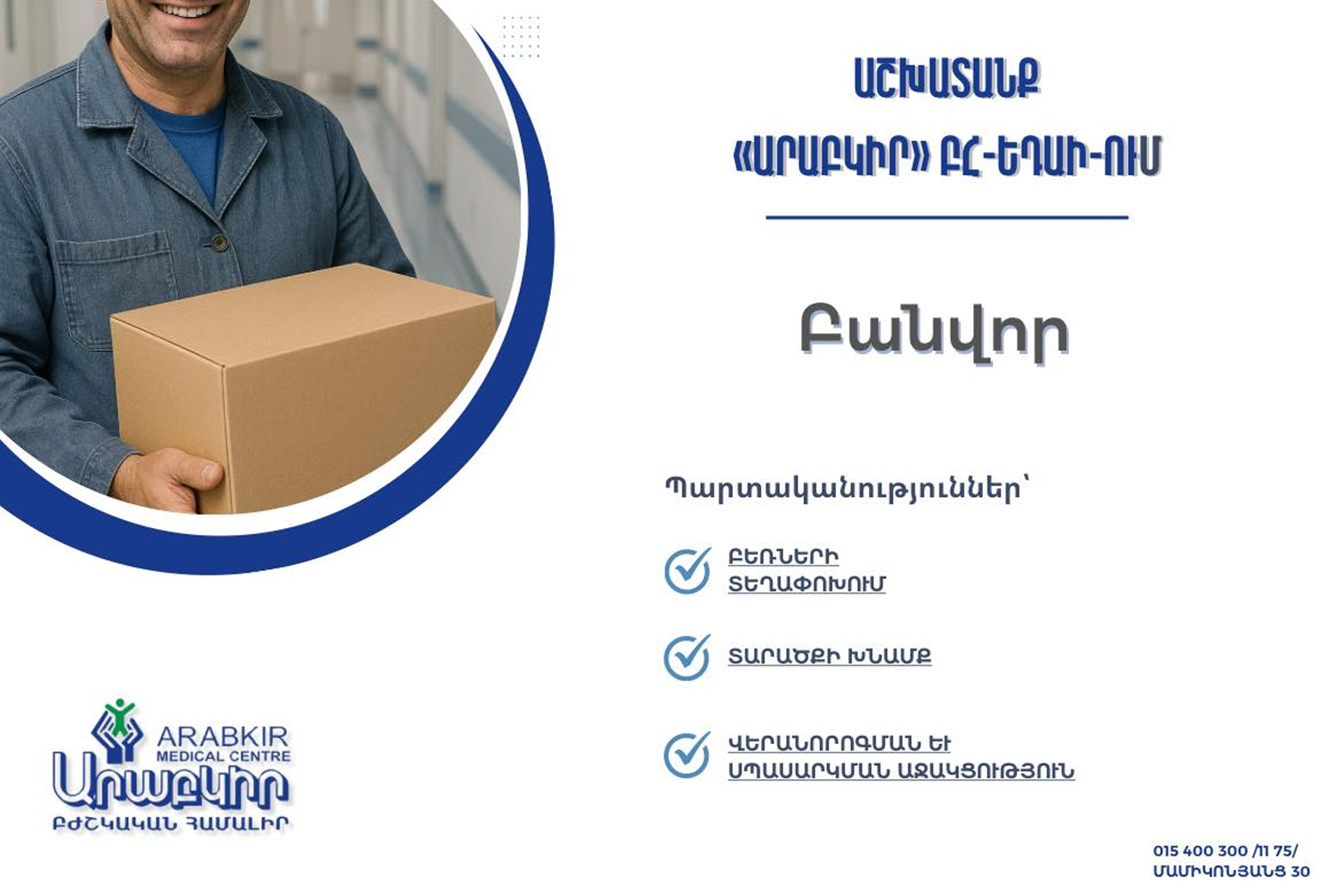 «Արաբկիր» բժշկական համալիրն աշխատանքի է հրավիրում բանվորի: