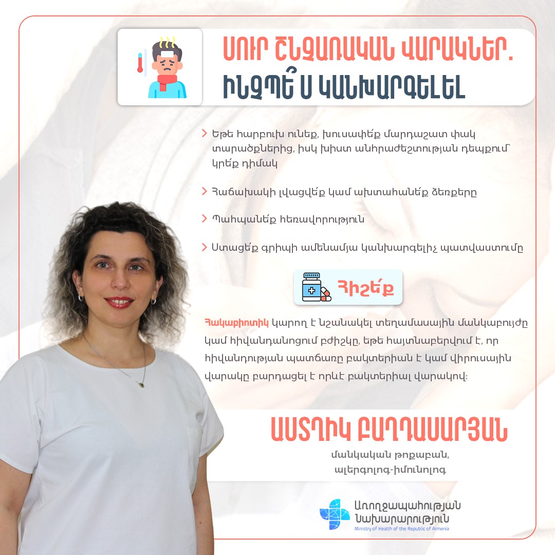 Хотя период с октября по май считается в Армении сезоном острых респираторных заболеваний, особенно в последние дни наблюдается активизация заболеваемости.