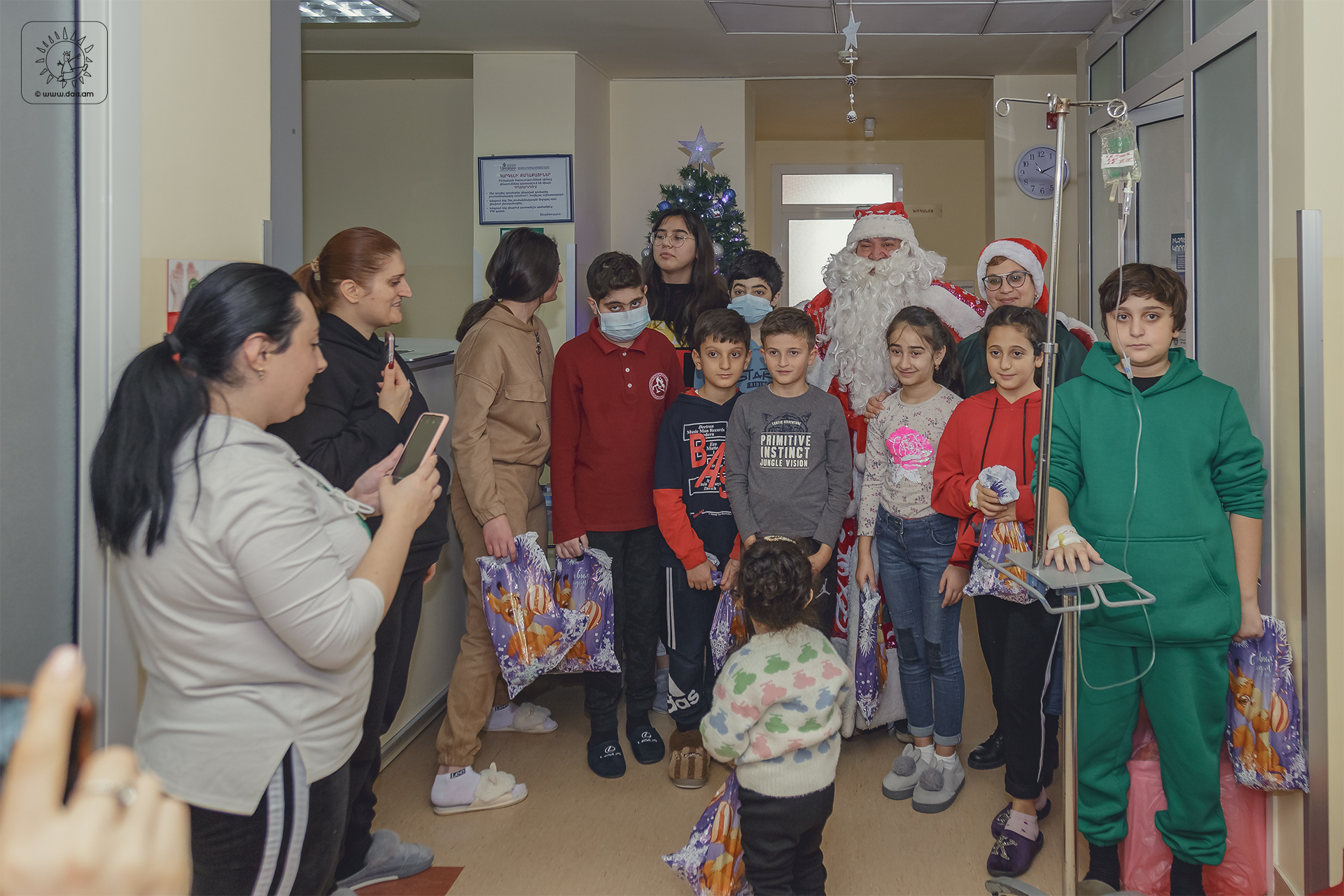 Один из них, так похожий на настоящего Дедушку, вместе со своими помощниками из внутрибольничной школы DAA ходил по отделениям, раздавал подарки, задавал вопросы и подбадривал лечащихся детей.