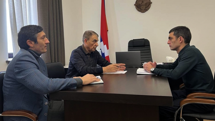 Члены Инициативы гуманитарной поддержки Арцаха Ара Баблоян и Амбарцум Симонян встретились с министром иностранных дел Республики Арцах Сергеем Казаряном.